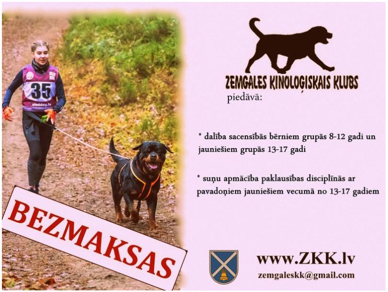 Sīkāka informācija par suņu sportu un apmācības iespējām pa e-pastu: [email protected]